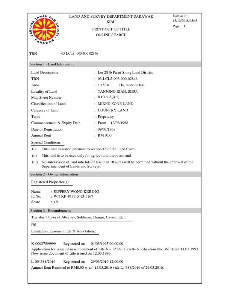 The aim is to enhance the customer experience in dealing with the State Government by providing one stop government frontline customer services through multiple channels. On TRXs retail updates Azmar said its main commercial area will be the Lifestyle Quarter developed by a 6040 joint venture JV company between Australias property and infrastructure group Lendlease and TRX City and. He said from enquiries with the Sarawak Land and Survey Department it was found the land involved belonged to the people of Sekuau and the department has no record that Felcra had carried out oil palm cultivation there.