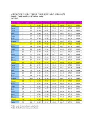 Waktu Solat Kawasan Tanjung Malim Perak Pdf